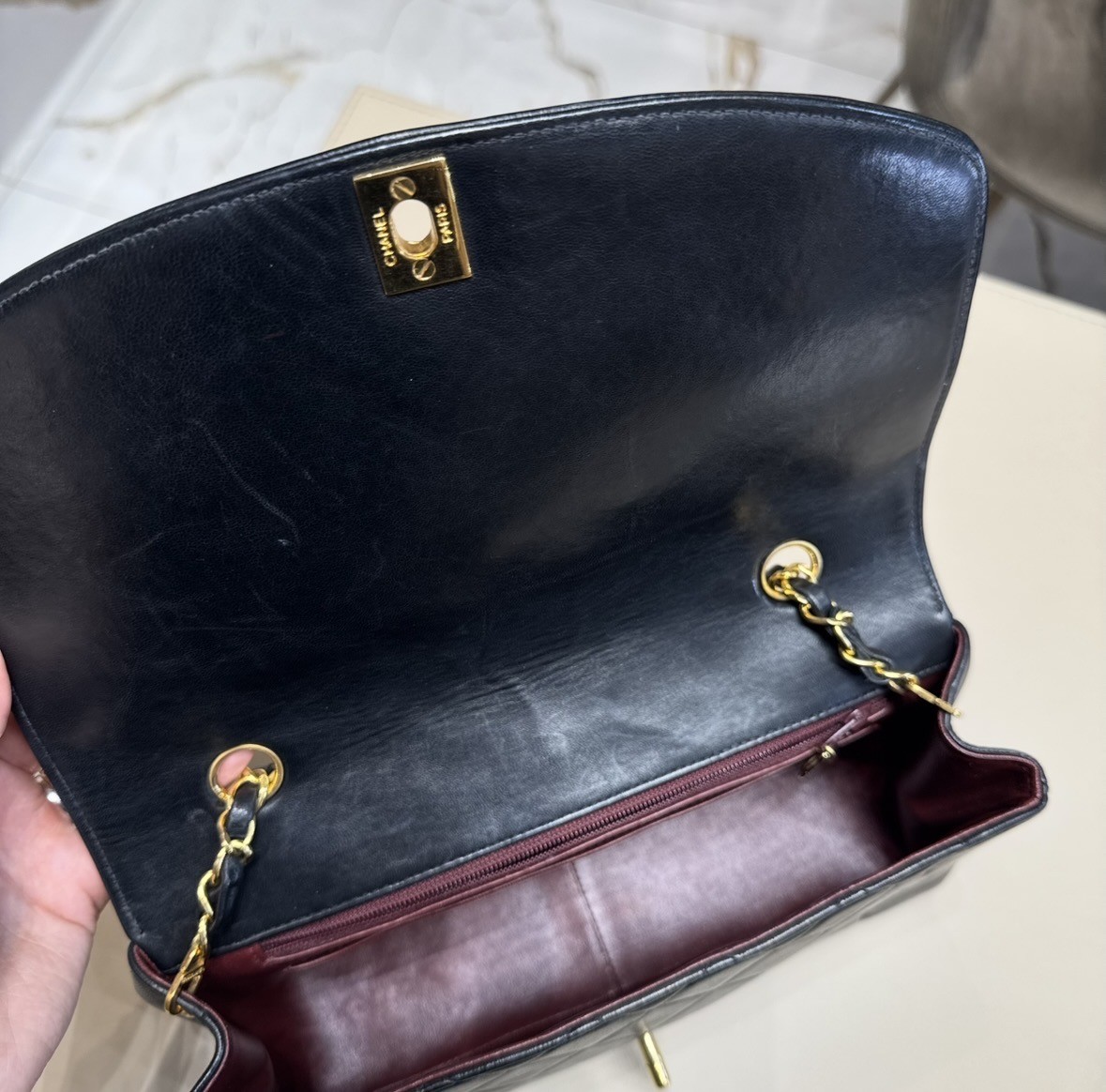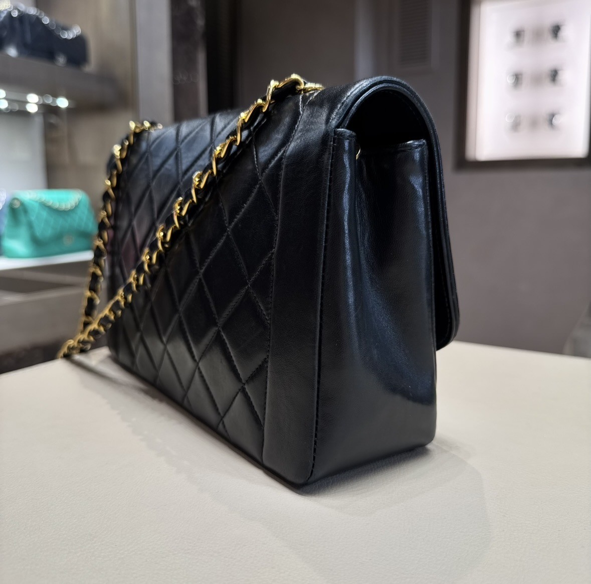 Chanel Vintage Diana black with gold hardware.