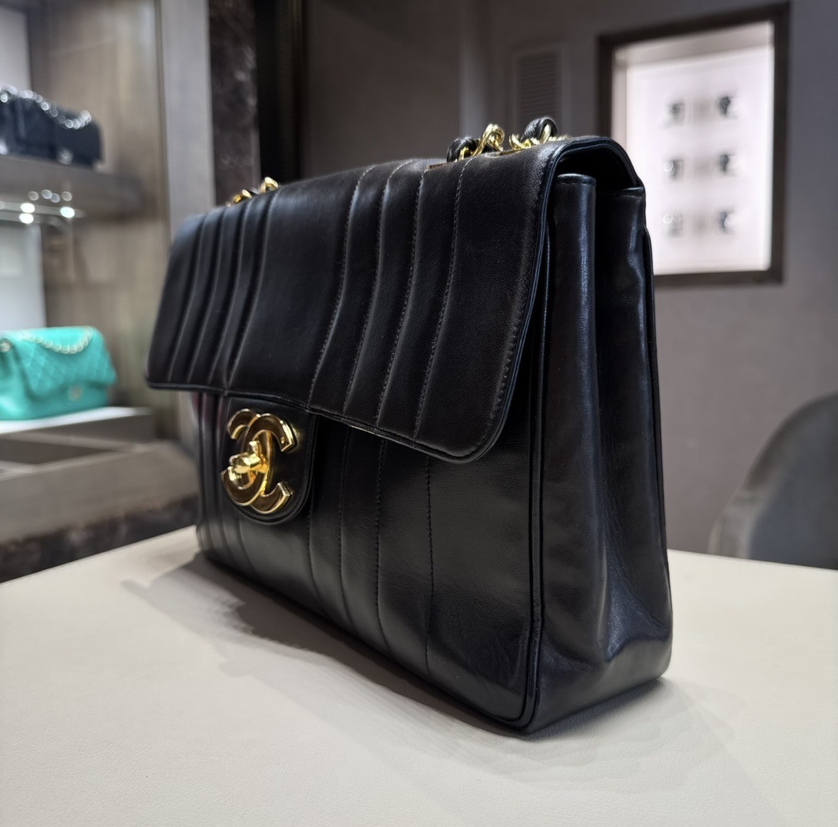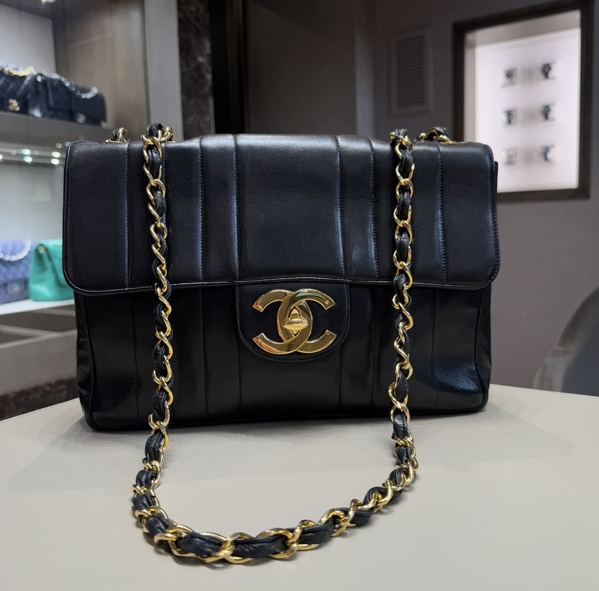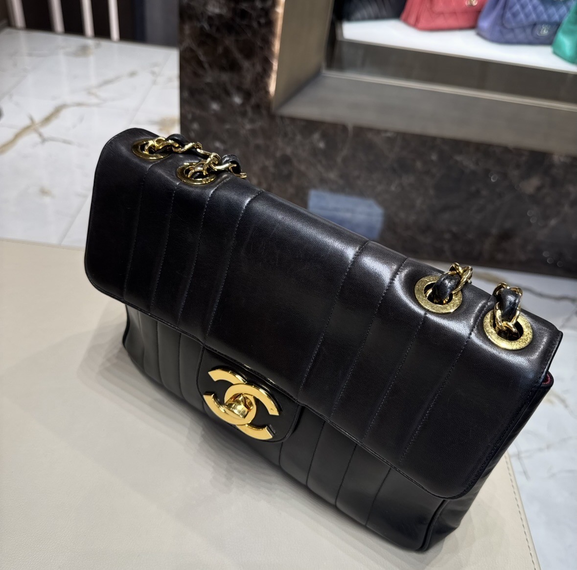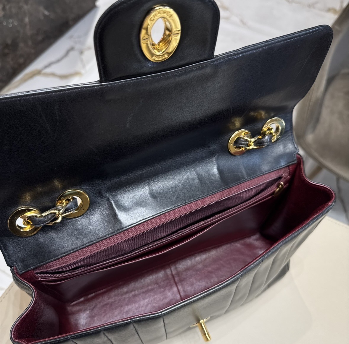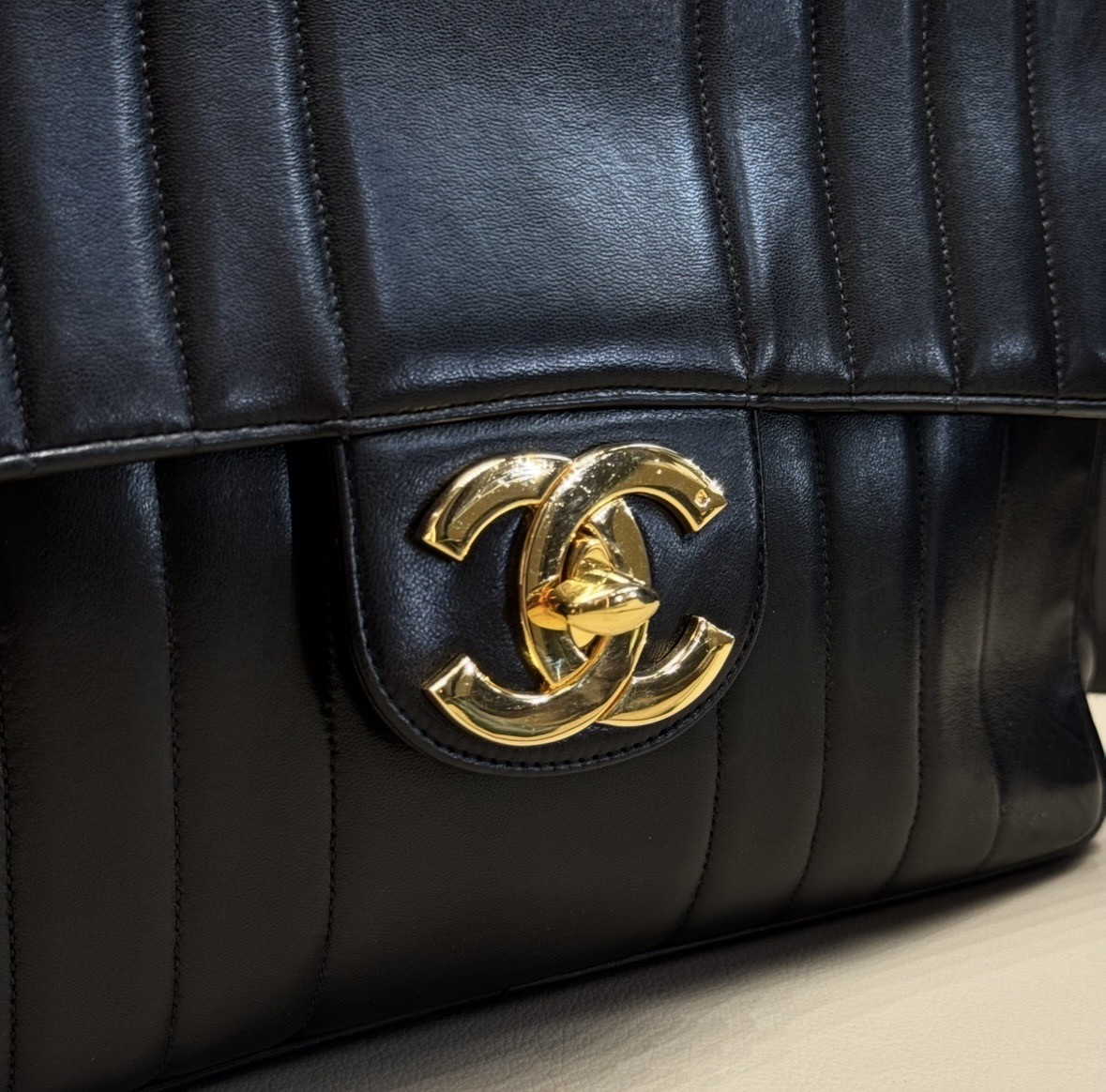 Chanel Vintage Big Logo large black bag with gold hardware.