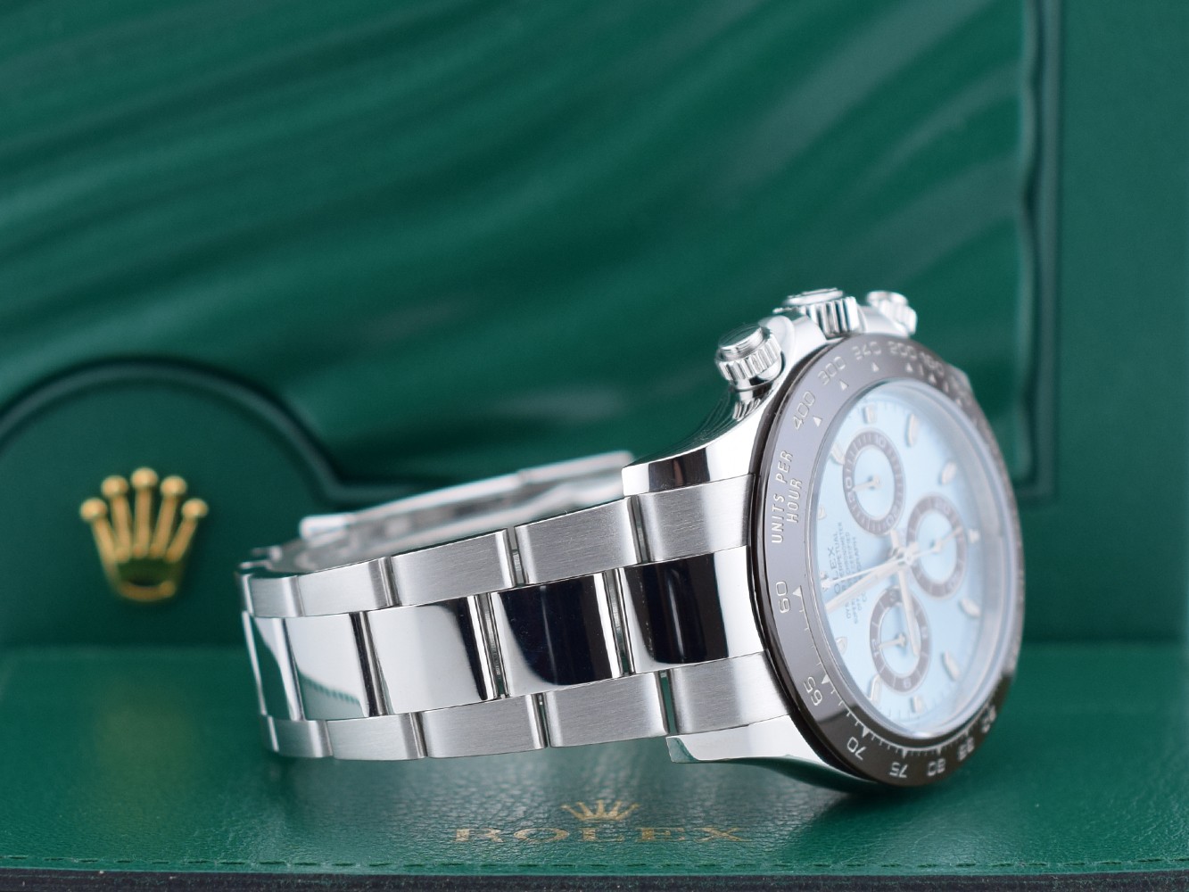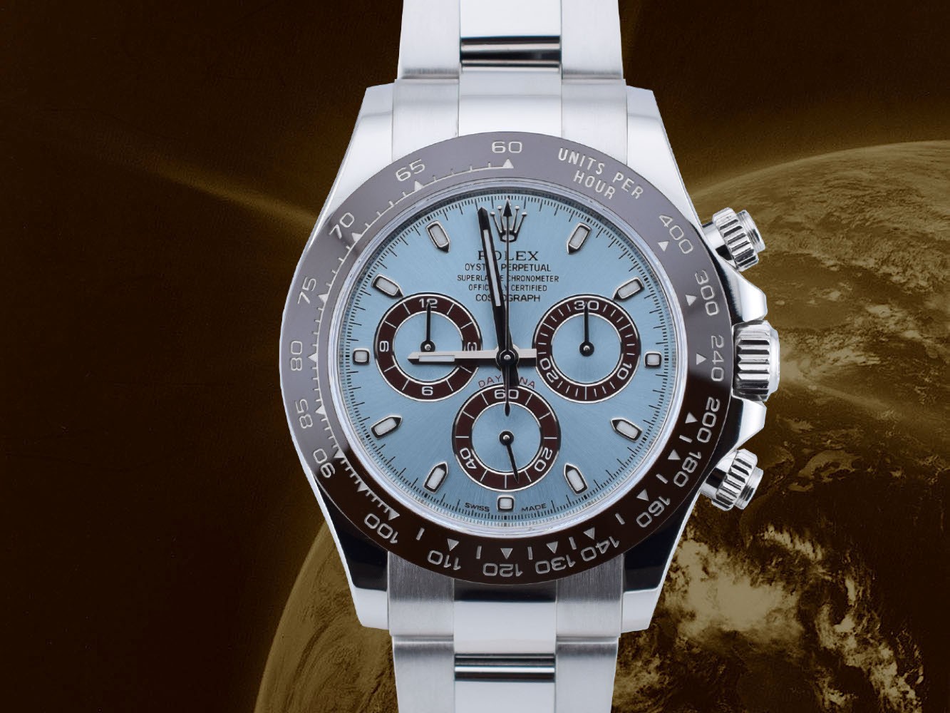 The Rolex Cosmograph Daytona, launched in 1963, is designed to meet the needs of professional pilots. The patented chronograph movement and the tachymeter scale allow pilots to measure the average speed of up to 400 kilometers per hour or - optionally - miles per hour. An icon that names and functions has always linked to the universe of high-performance automotive sports