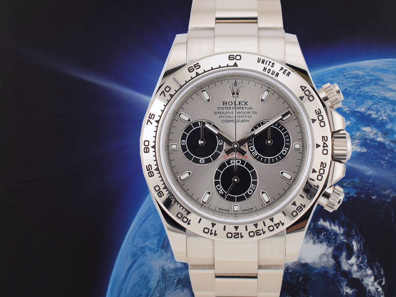 The Rolex Cosmograph Daytona, launched in 1963, is designed to meet the needs of professional pilots. The patented chronograph movement and the tachymeter scale allow pilots to measure the average speed of up to 400 kilometers per hour or - optionally - miles per hour. An icon that names and functions has always linked to the universe of high-performance automotive sports