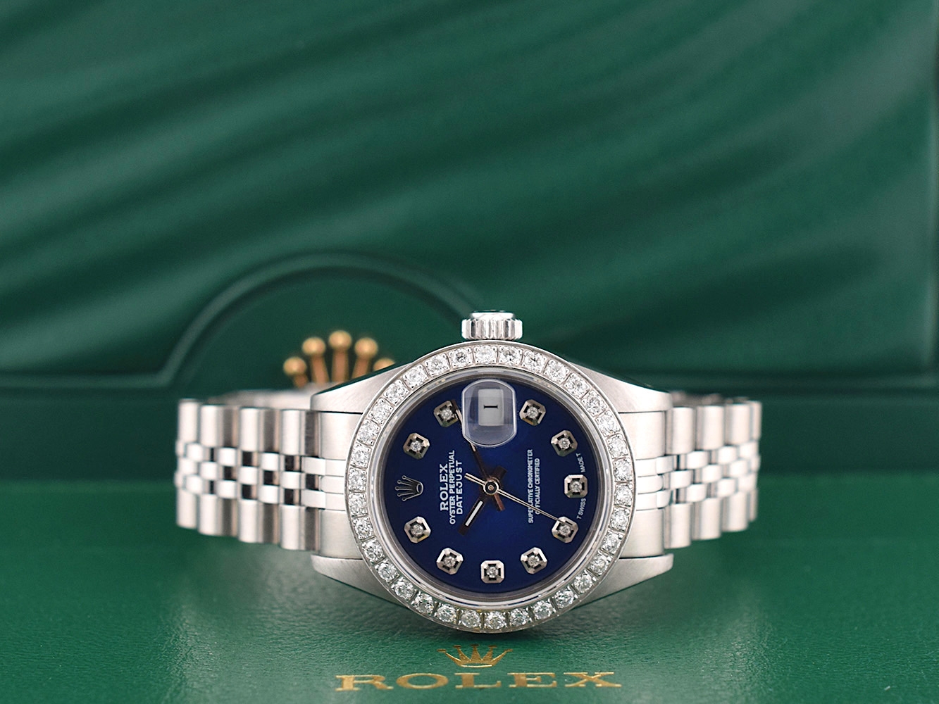 Rolex Datejust Lady 69174 Blue Dial With Big Diamonds & After Diamonds Bezel 26mm