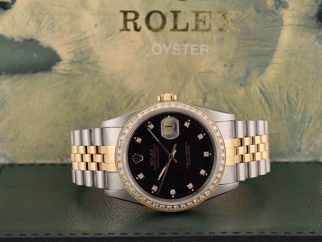 Rolex Datejust 16233 Black Diamonds Dial - After Diamonds Bezel - Full Set 36mm