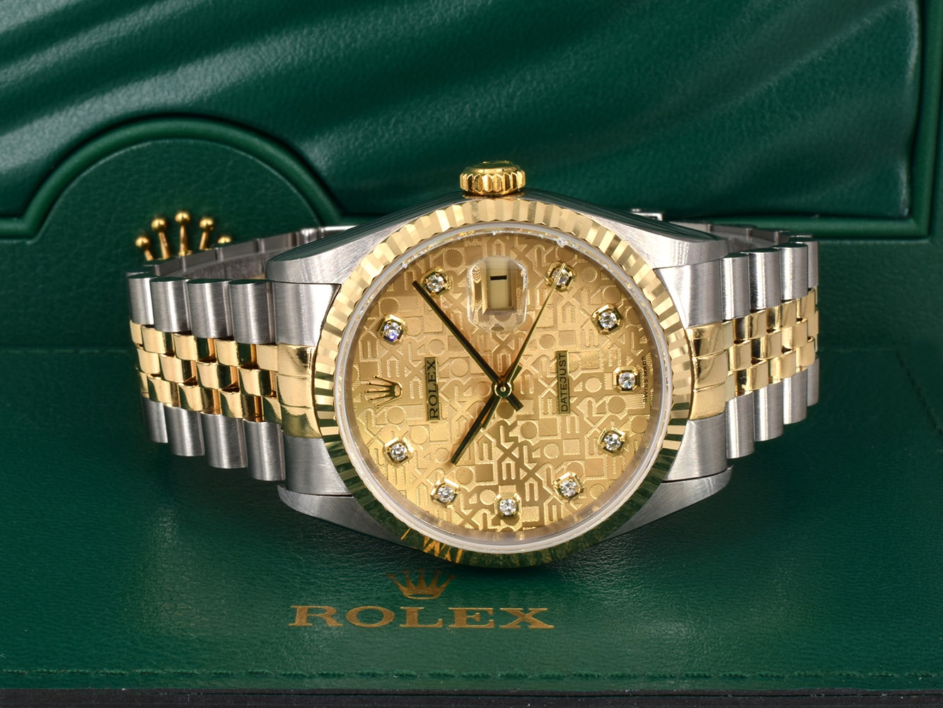 Rolex Datejust 16233 Gold Jubilee Dial With Big Diamonds - Full Set 36mm
