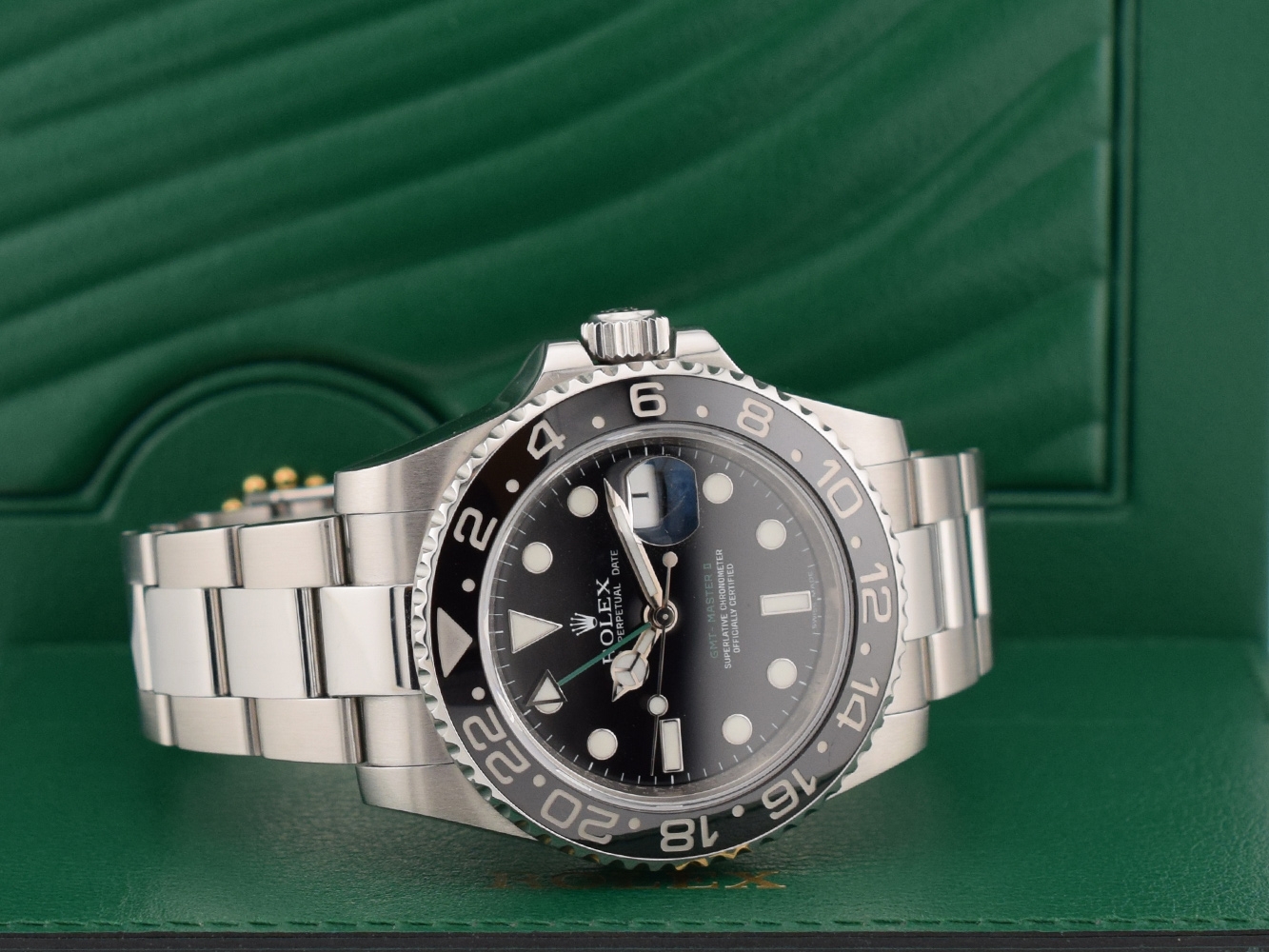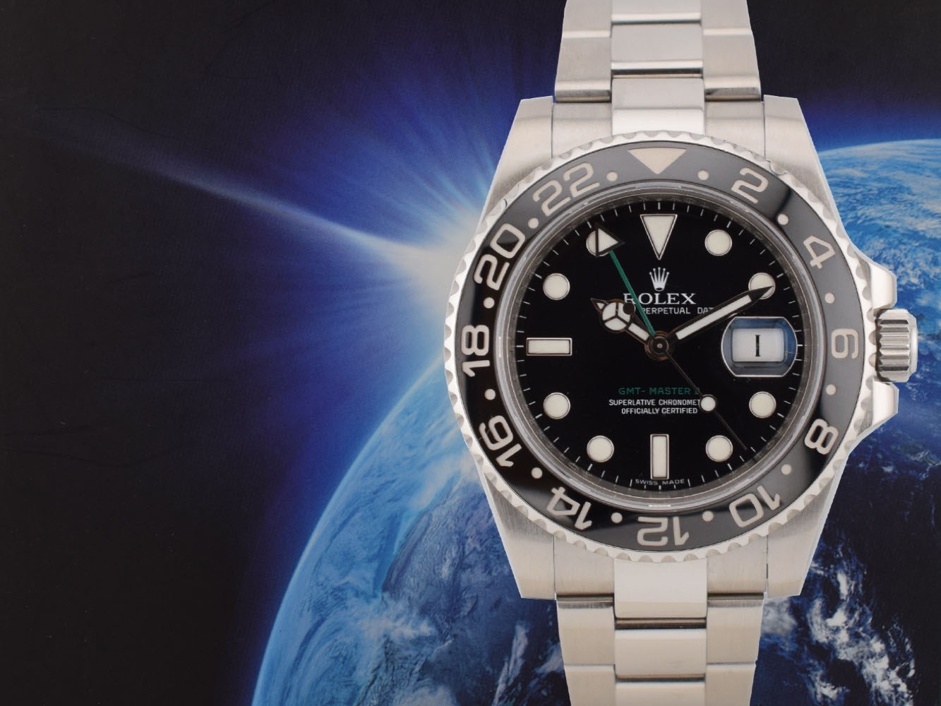 Although the Rolex GMT-Master was designed essentially for professional use, its combination of peerless functionality and rugged good looks has attracted a wider travelling public. As well as appreciating its ability to display different time zones, these travellers admire the robustness and versatile appearance that make the GMT-Master eminently suitable for globetrotting and, indeed, for any occasion.