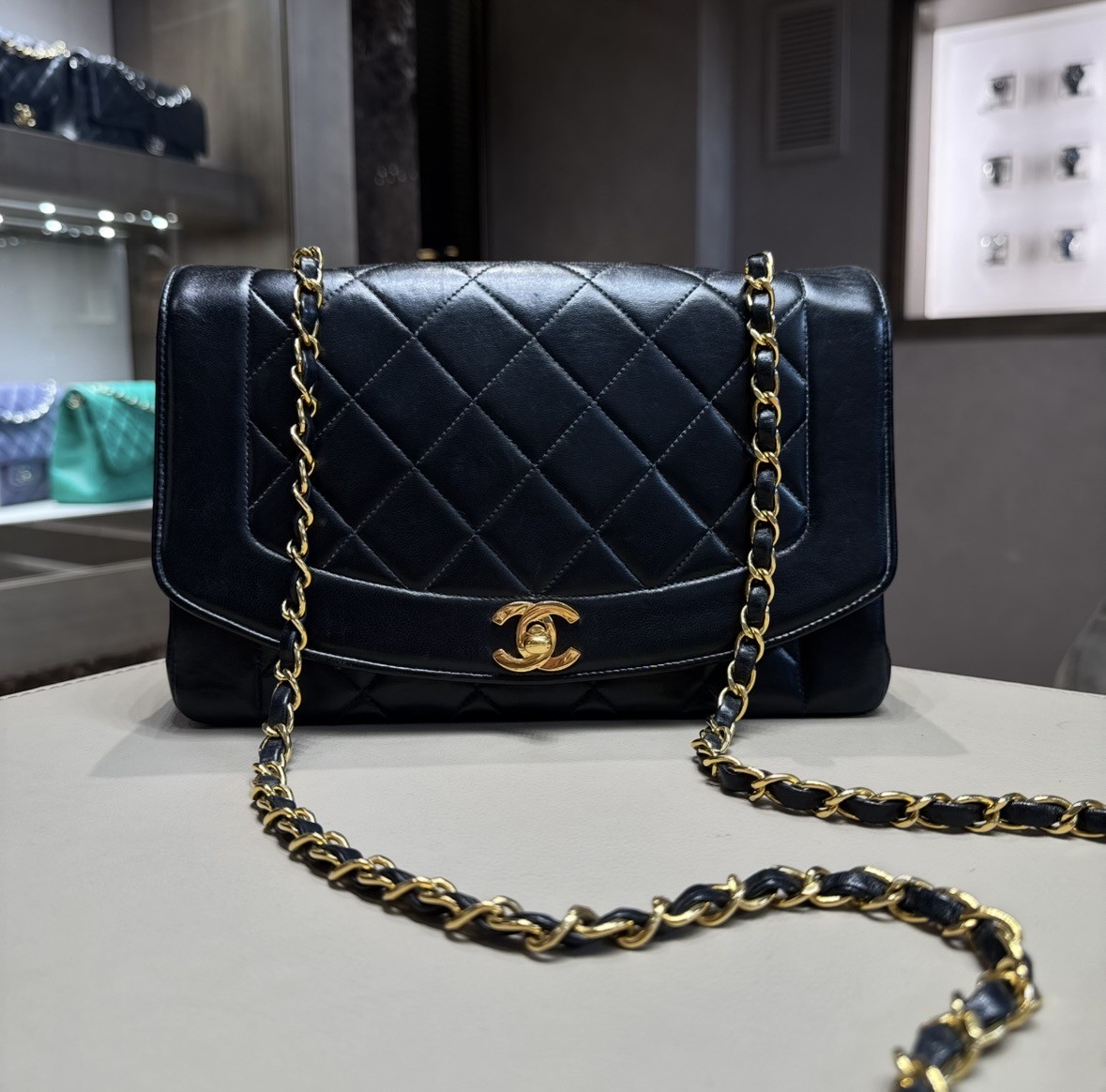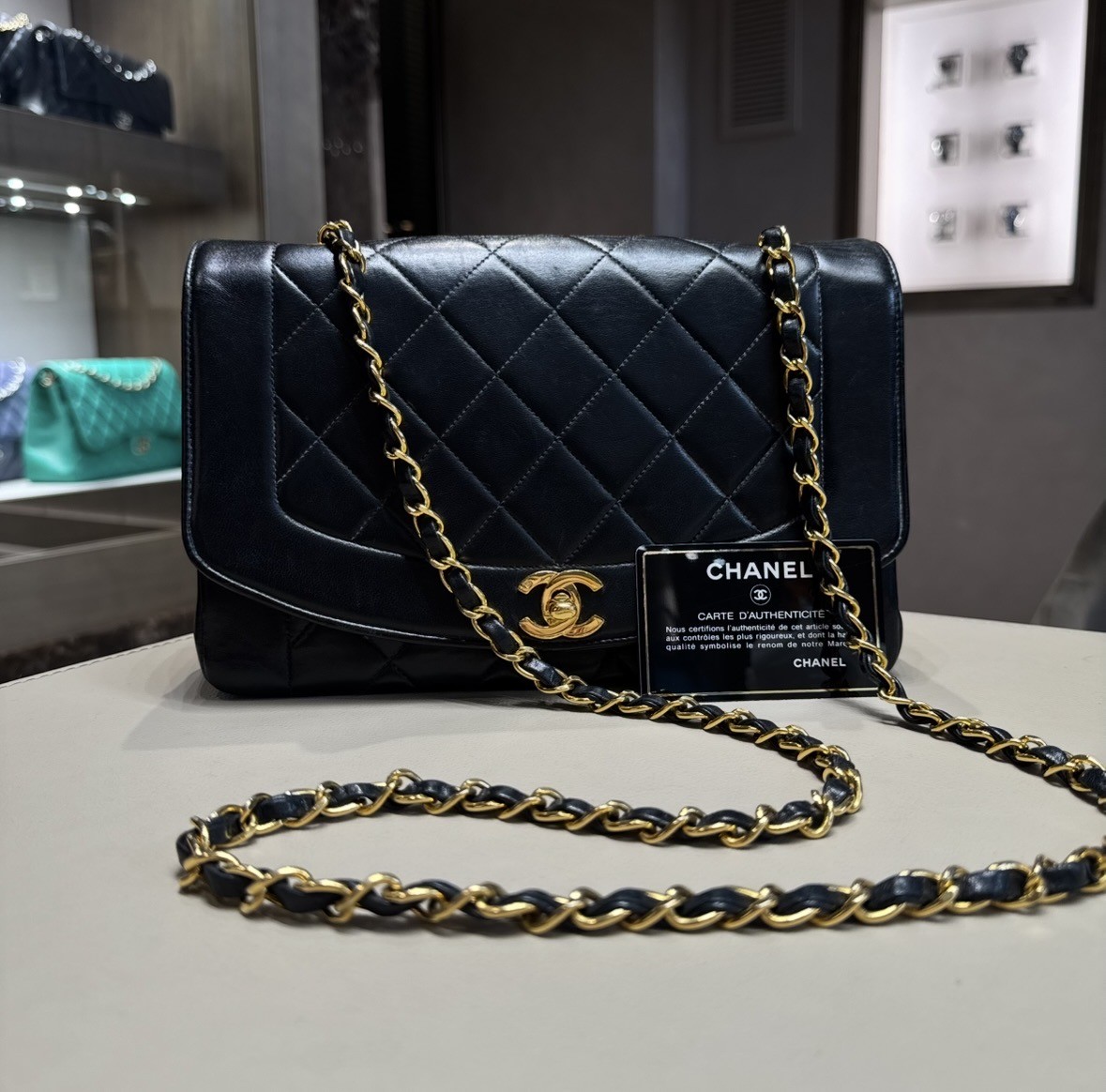 Chanel Vintage Big Logo grande nera in pelle di agnello con hardware gold.