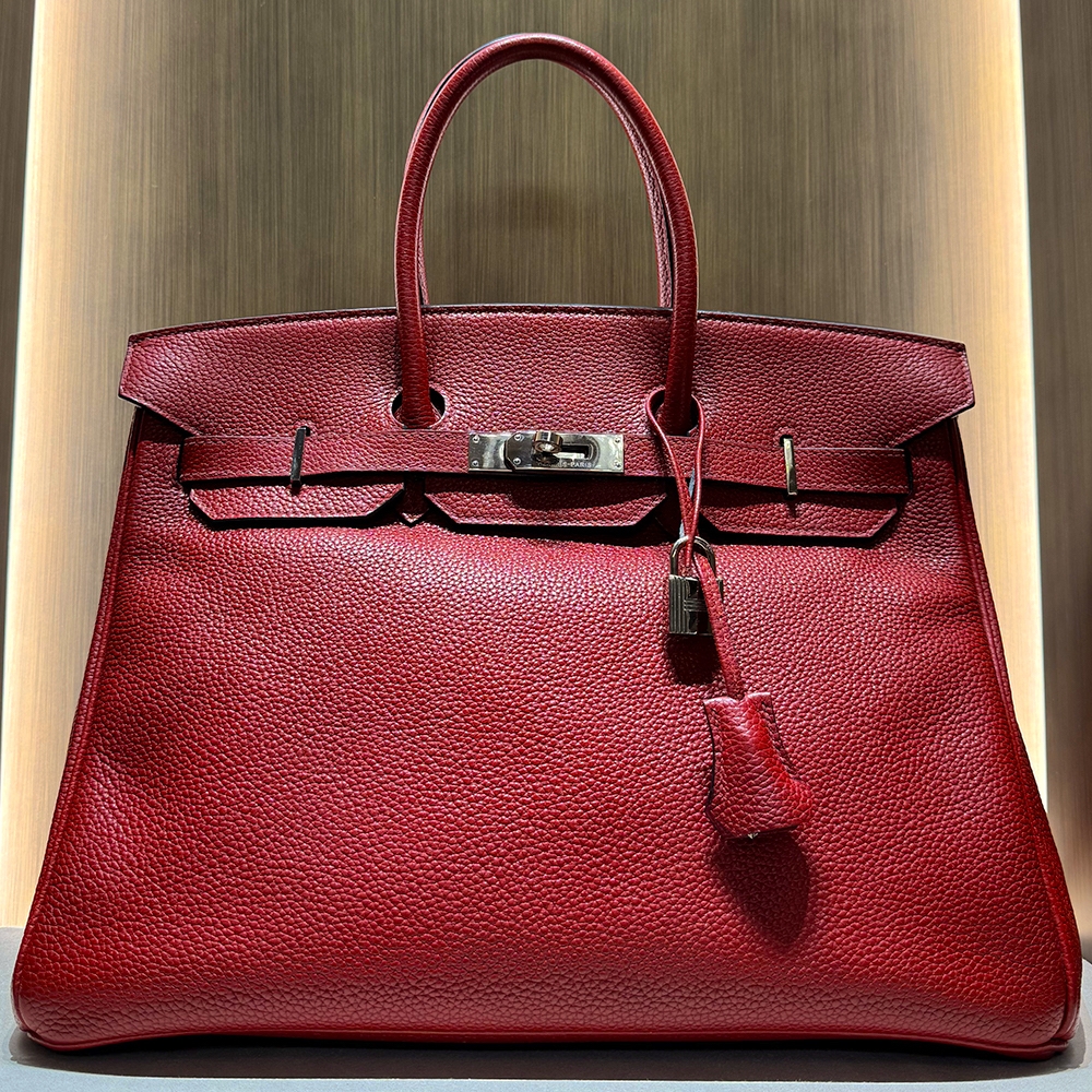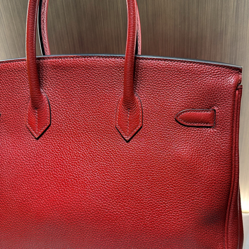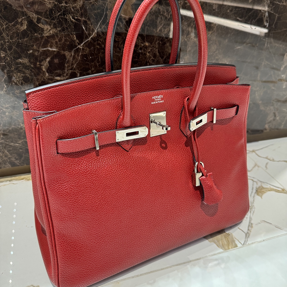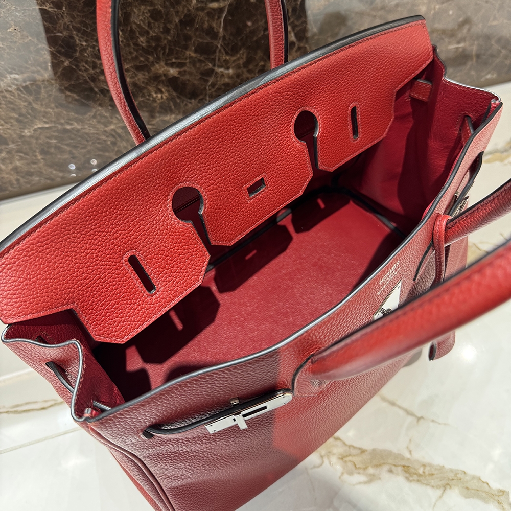 Borsa Hermés Birkin Rosso in pelle togo con hardware palladio. Dimensioni: 35 x 25 x 18. Anno 2010 con stamp N.