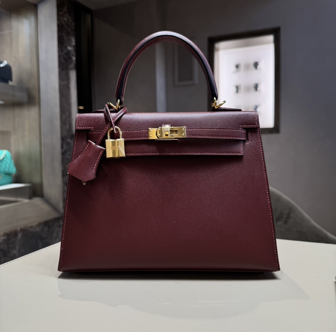 Borsa Hermés Kelly Eau Madame Sellier con hardware gold. Dimensioni: 25 x 19 x 9. Anno 2026 con stamp G.