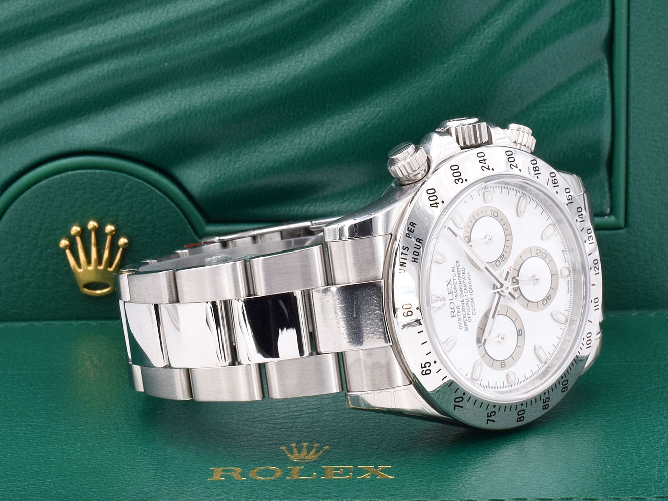 Il Rolex Cosmograph Daytona, lanciato nel 1963, è stato progettato per rispondere alle necessità dei piloti professionisti. Il movimento cronografico brevettato e la lunetta con scala tachimetrica consentono ai piloti l’esatta misurazione della velocità media fino a 400 chilometri orari o - a scelta - miglia orarie. Un’icona che nome e funzioni legano da sempre all’universo degli sport automobilistici e delle prestazioni elevate.