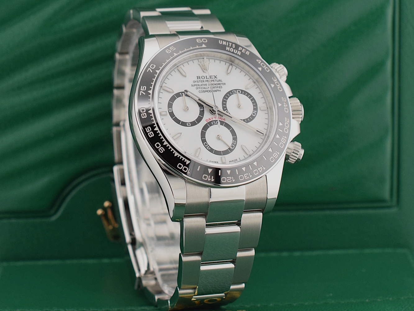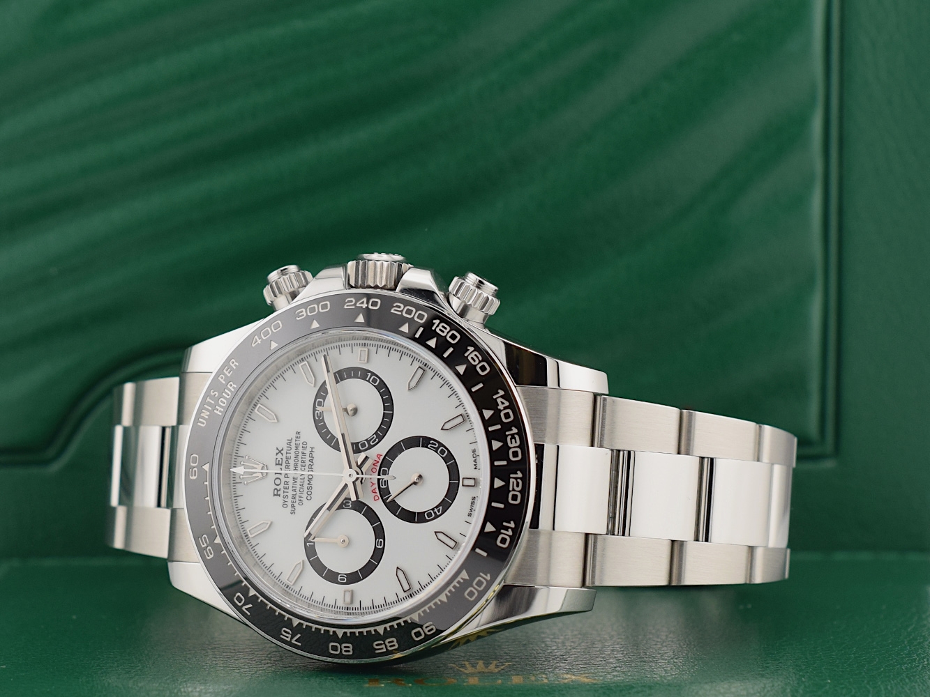 Il Rolex Cosmograph Daytona, lanciato nel 1963, è stato progettato per rispondere alle necessità dei piloti professionisti. Il movimento cronografico brevettato e la lunetta con scala tachimetrica consentono ai piloti l’esatta misurazione della velocità media fino a 400 chilometri orari o - a scelta - miglia orarie. Un’icona che nome e funzioni legano da sempre all’universo degli sport automobilistici e delle prestazioni elevate.