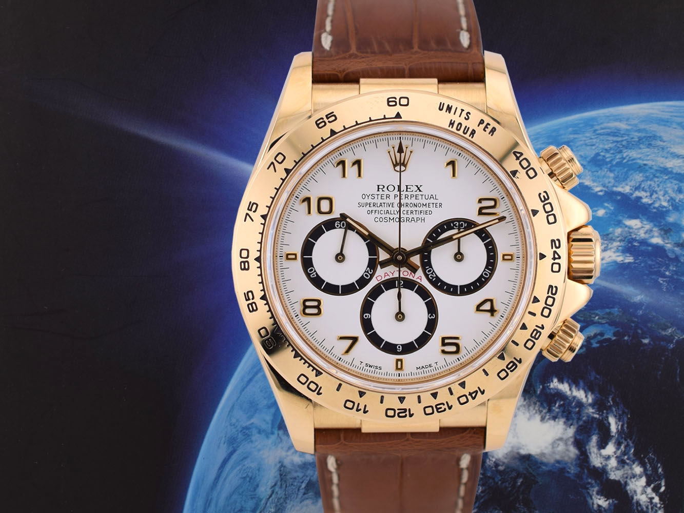 Il Rolex Cosmograph Daytona, lanciato nel 1963, è stato progettato per rispondere alle necessità dei piloti professionisti. Il movimento cronografico brevettato e la lunetta con scala tachimetrica consentono ai piloti l’esatta misurazione della velocità media fino a 400 chilometri orari o - a scelta - miglia orarie. Un’icona che nome e funzioni legano da sempre all’universo degli sport automobilistici e delle prestazioni elevate.