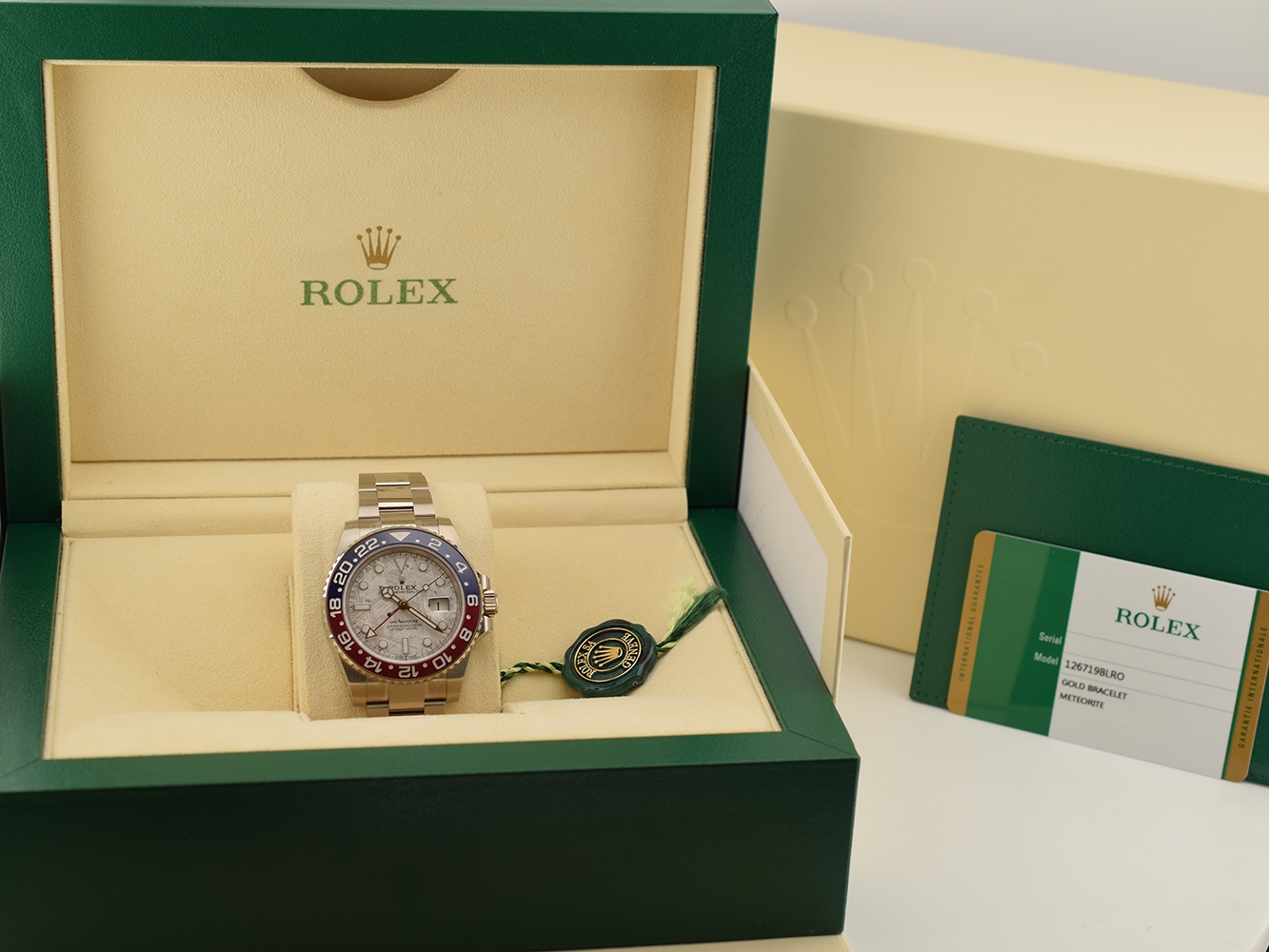 Rolex GMT-Master II White Gold Pepsi Meteorite Dial 126719BLRO 2020 NEW Stickers